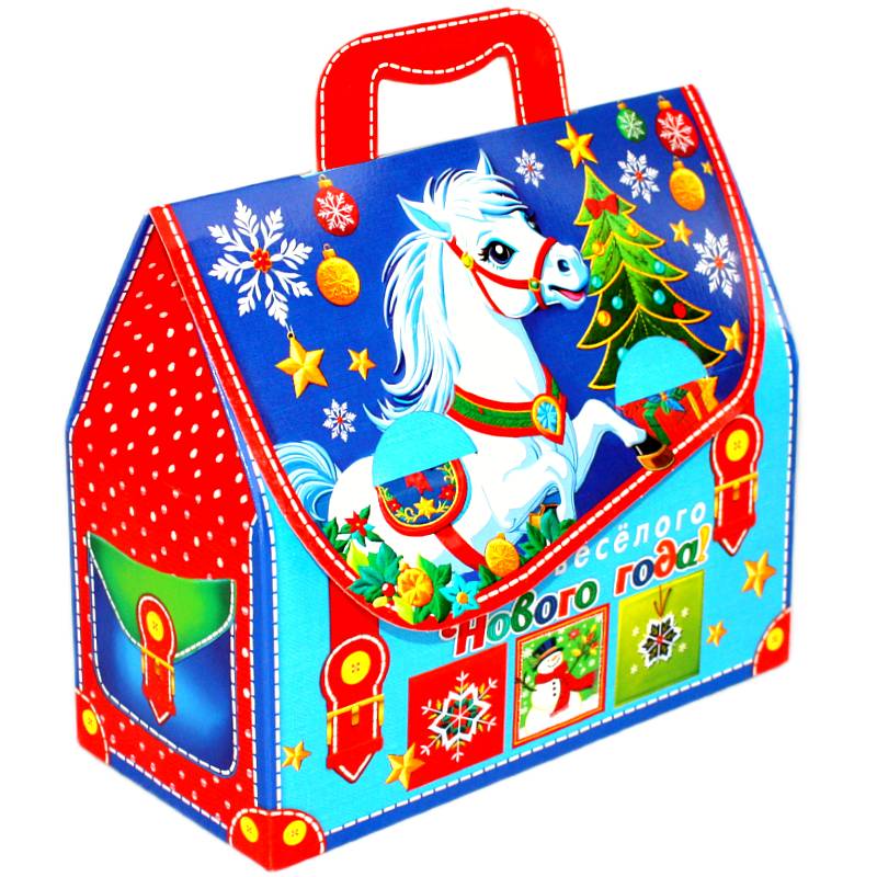 Детский новогодний подарок в картонной упаковке весом 1200 грамм